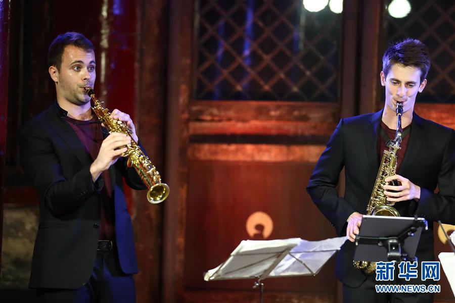 5月26日,凱比亞特樂隊(duì)成員在音樂會上表演。 當(dāng)日,作為第十九屆“相約北京”藝術(shù)節(jié)系列演出之一,西班牙凱比亞特樂隊(duì)薩克斯四重奏音樂會在北京Temple東景緣上演。 新華社記者 張玉薇 攝
