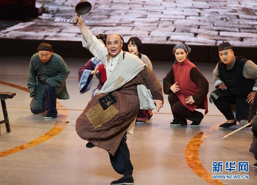 6月2日,獲得文華表演獎(jiǎng)的演員梁偉平在第十二屆中國(guó)藝術(shù)節(jié)閉幕式上匯報(bào)演出淮劇《武訓(xùn)先生》選段。 新華社記者 任瓏 攝