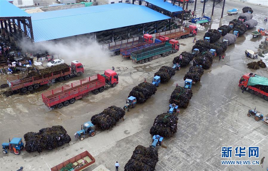 4月10日,霞浦縣長春鎮(zhèn)海帶養(yǎng)殖戶在埕塢碼頭吊運海帶。近日,福建省寧德市霞浦縣30余萬畝養(yǎng)殖海帶進入收獲季節(jié),當?shù)仞B(yǎng)殖戶搶抓晴好天氣,收獲海帶。海帶養(yǎng)殖是霞浦縣群眾增收致富的支柱產(chǎn)業(yè)。2018年該縣海帶產(chǎn)量14萬余噸。新華社記者 姜克紅 攝