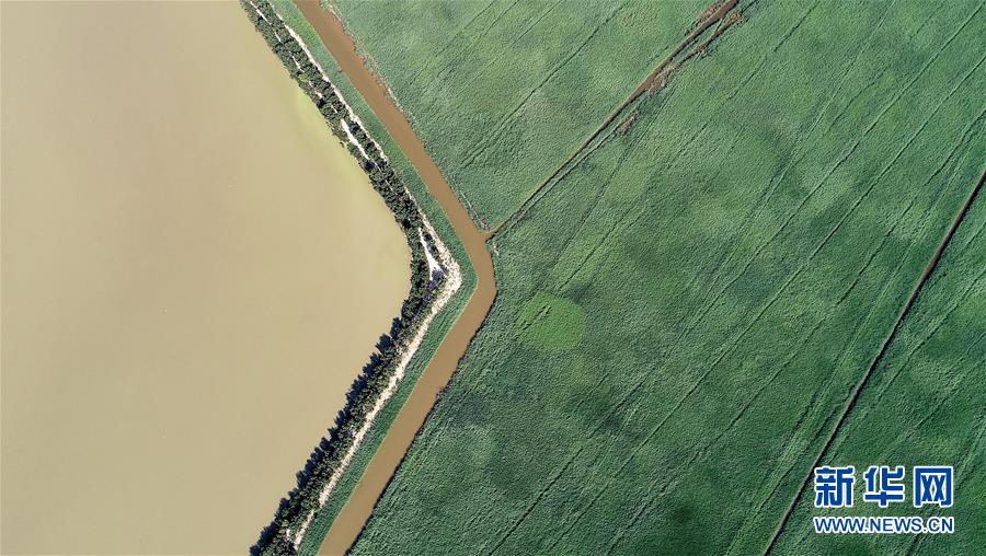 這是天津市寧河區(qū)七里海濕地內(nèi)蘆葦和水面形成的圖案(6月22日無人機(jī)拍攝)。