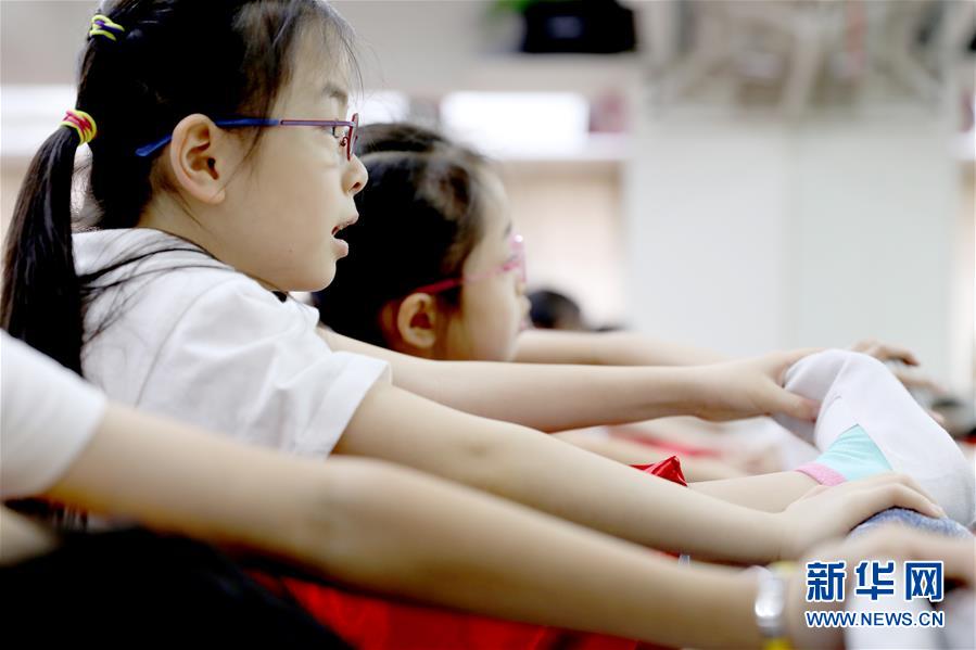 在聲輝粵劇推廣協(xié)會排練室里,孩子們在壓腿(6月8日攝)。 聲輝粵劇推廣協(xié)會成立于2003年,是香港重要粵劇藝術(shù)團體之一,致力于向青少年推廣粵劇。協(xié)會目前有兩個初班,3個中班,一個青少年班。粵劇又稱“廣東大戲”,表演技藝包括“唱做念打”,即唱功、身段、臺詞、武打,主要流行于廣東、廣西和香港、澳門等地區(qū)。2009年,粵劇被列入聯(lián)合國教科文組織人類非物質(zhì)文化遺產(chǎn)代表作名錄,今年正逢十周年。 新華社記者 吳曉初 攝