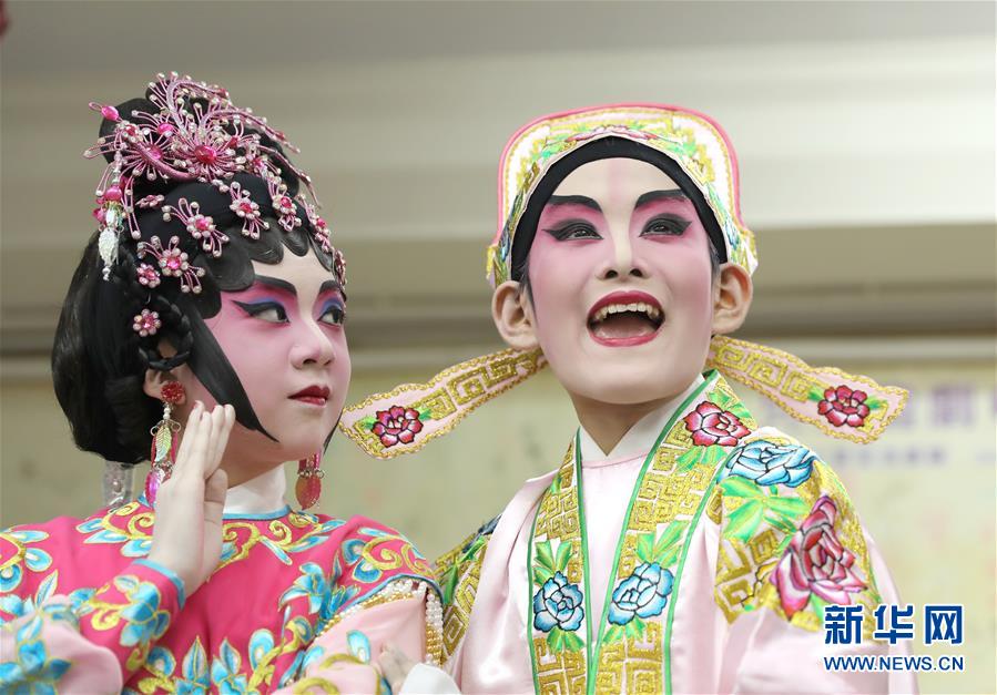 粵劇小演員陸瑞徽飾演折子戲《艷曲醉周郎》里的小喬(6月8日攝)。 聲輝粵劇推廣協(xié)會成立于2003年,是香港重要粵劇藝術(shù)團體之一,致力于向青少年推廣粵劇。協(xié)會目前有兩個初班,3個中班,一個青少年班?;泟∮址Q“廣東大戲”,表演技藝包括“唱做念打”,即唱功、身段、臺詞、武打,主要流行于廣東、廣西和香港、澳門等地區(qū)。2009年,粵劇被列入聯(lián)合國教科文組織人類非物質(zhì)文化遺產(chǎn)代表作名錄,今年正逢十周年。 新華社記者 吳曉初 攝