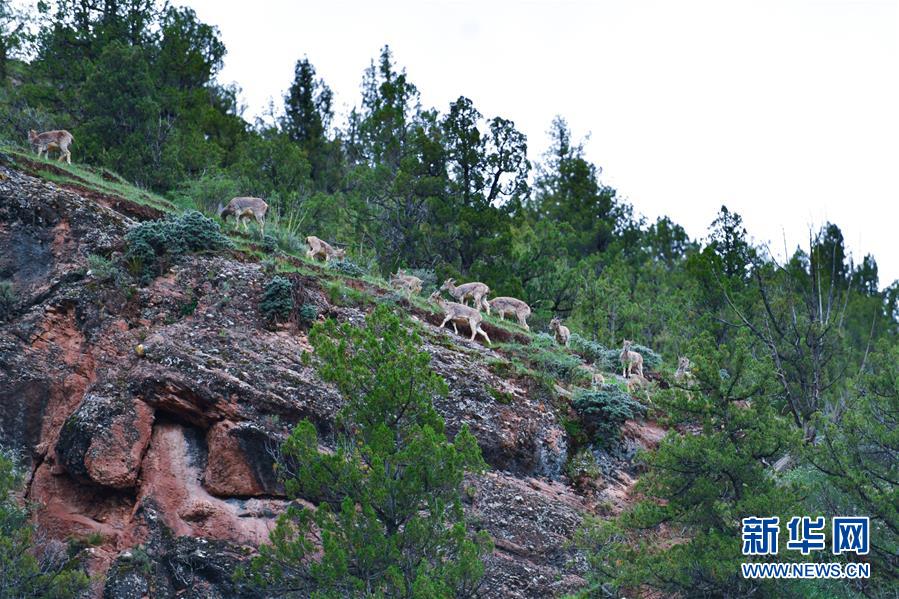 這是在青海省玉樹藏族自治州雜多縣昂賽鄉(xiāng)境內(nèi)拍攝的一群巖羊(6月21日攝)。  新華社記者 張龍 攝