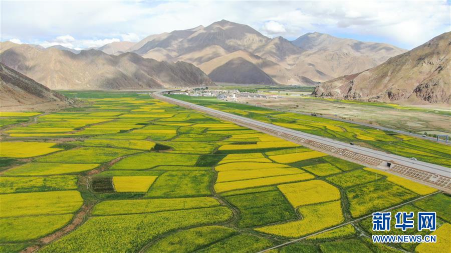 7月2日在拉薩市堆龍德慶區(qū)德慶鄉(xiāng)拍攝的油菜花田。 近日,西藏各地的油菜花盛開(kāi),呈現(xiàn)出生機(jī)勃勃的夏日美景。 新華社記者 李鑫 攝