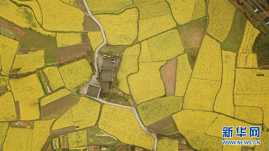 這是黟縣盧村的油菜花田(3月28日無人機(jī)拍攝)。近日,安徽省黃山市黟縣的油菜花迎來盛花期。金黃的油菜花與屋舍、道路等形成一幅幅美麗的鄉(xiāng)村畫卷,引人入勝。 新華社記者張端攝