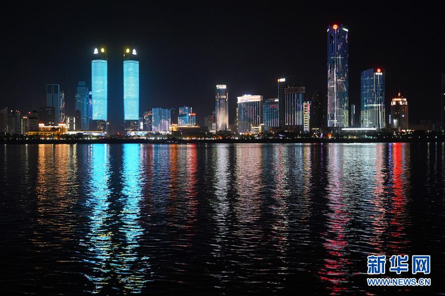 這是江西南昌贛江畔上演的燈光秀(8月6日攝)。 新華社記者周密 攝