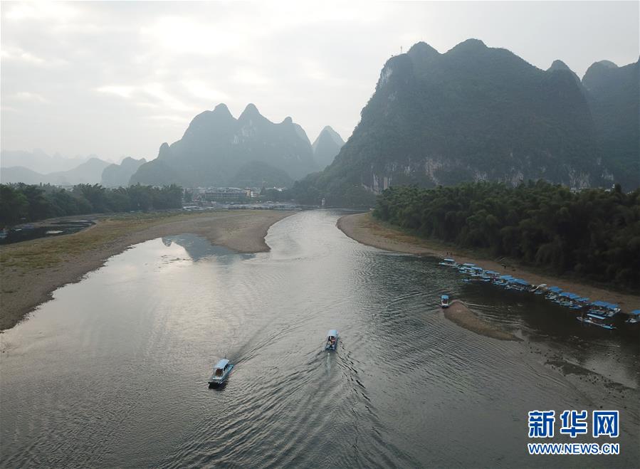 這是廣西桂林市陽朔縣興坪鎮(zhèn)漓江風(fēng)光(10月18日無人機(jī)拍攝)。 新華社記者 周華 攝