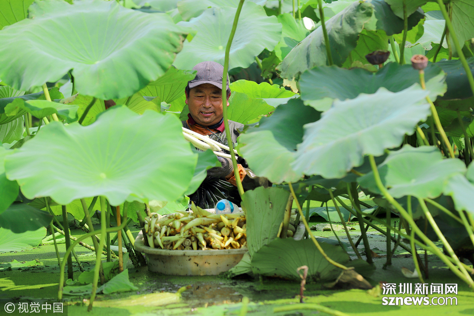 相關(guān)鏈接 烈日下的采藕人 每天采摘千斤荷藕