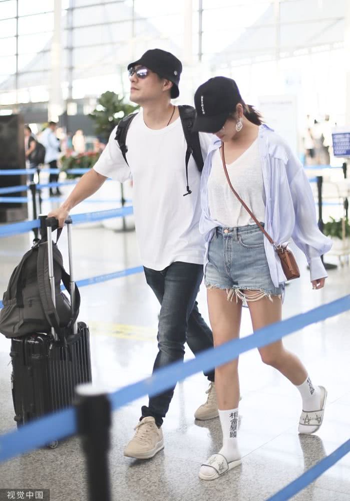 2019年8月19日,長沙,嚴(yán)屹寬、杜若溪夫婦現(xiàn)身機場。辦完登機手續(xù)后嚴(yán)屹寬主動拎過所有行李,妥妥的模范老公,而美美的杜若溪素顏亮相,大玩下衣失蹤秀美腿,襪子上的“相當(dāng)暴躁”有點意思!