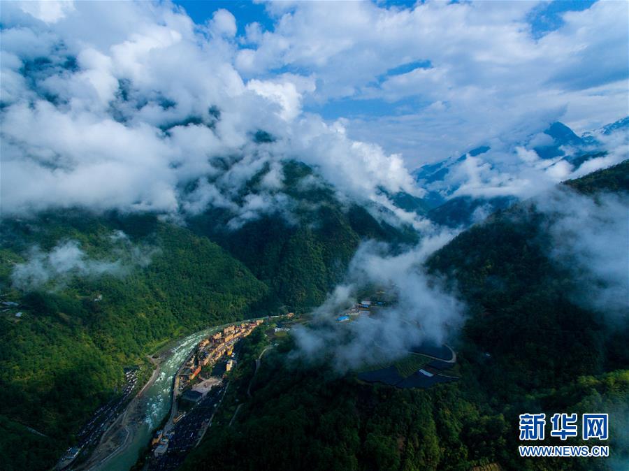 云霧繚繞的獨(dú)龍江峽谷,高黎貢山與擔(dān)當(dāng)力卡山夾江而立(4月18日無(wú)人機(jī)拍攝)。 新華社記者 江文耀 攝