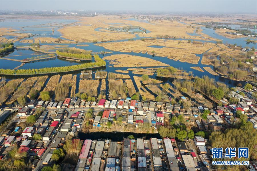 3月31日無(wú)人機(jī)拍攝的雄安新區(qū)白洋淀。新華社記者王曉攝