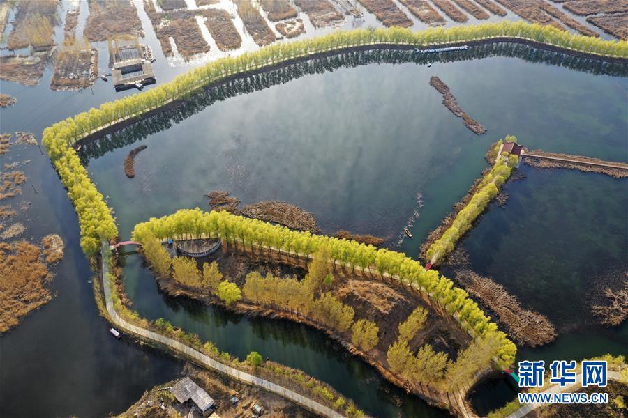 3月31日無人機(jī)拍攝的雄安新區(qū)白洋淀。新華社記者朱旭東攝