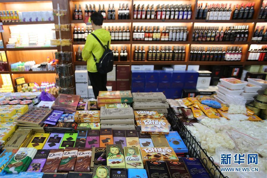 9月4日,在新疆塔城地區(qū)巴克圖口岸,顧客在絲路文化商品城內(nèi)選購商品。 新華社記者安希雅攝