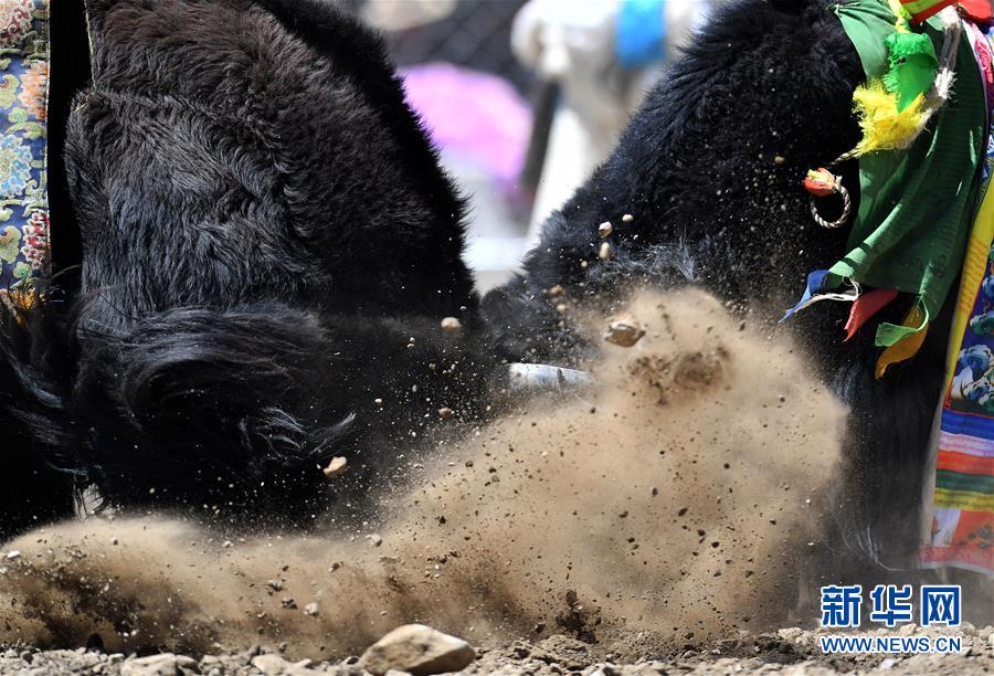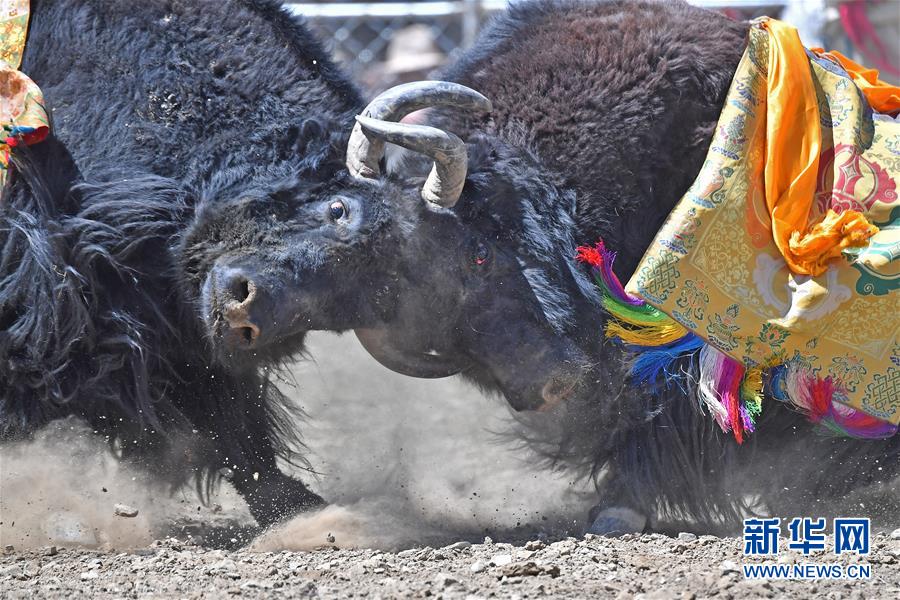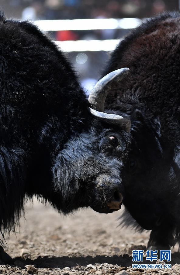者下鄉(xiāng)斗牛節(jié)歷史悠久,是西藏自治區(qū)非物質文化遺產(chǎn)。牧民為參加比賽的種牦牛披綢掛緞,將牛群趕到位于日喀則市白朗縣者下鄉(xiāng)的斗牛場上。參賽的種牦牛為了爭奪牛群的控制權,在成群的母牛面前,更加好斗。角斗有的瞬間分出勝負,有的持續(xù)幾十分鐘,最終勝出的被稱為“牦牛至尊”。