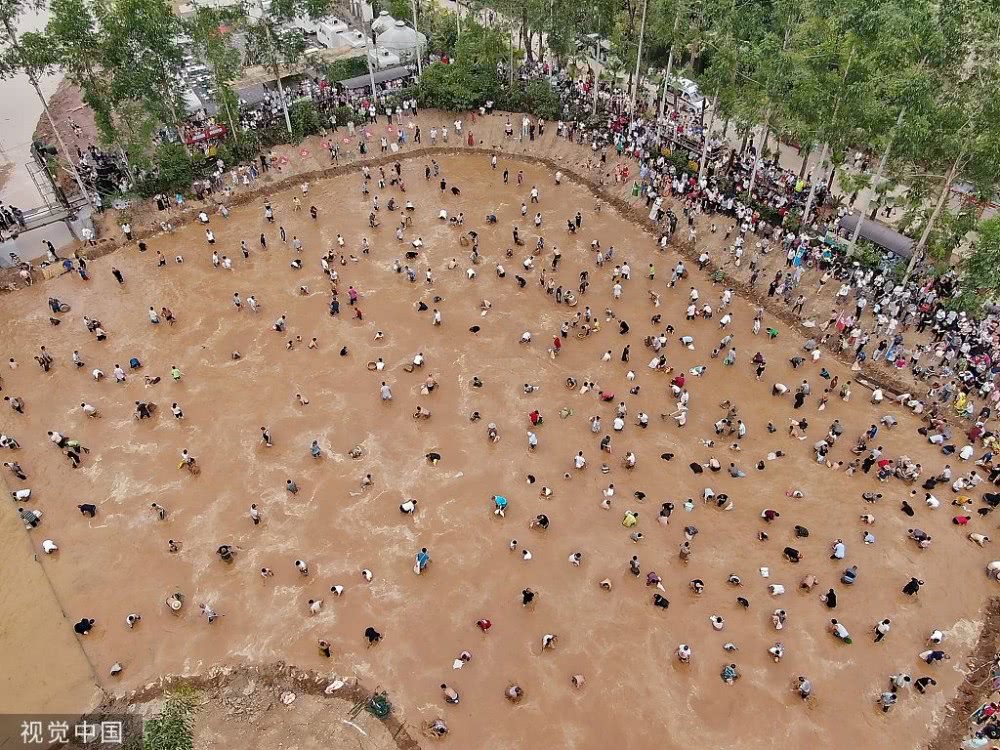 2019年9月7日,重慶,涪陵區(qū)曬秋捉魚(yú)活動(dòng)在紅酒小鎮(zhèn)舉行。