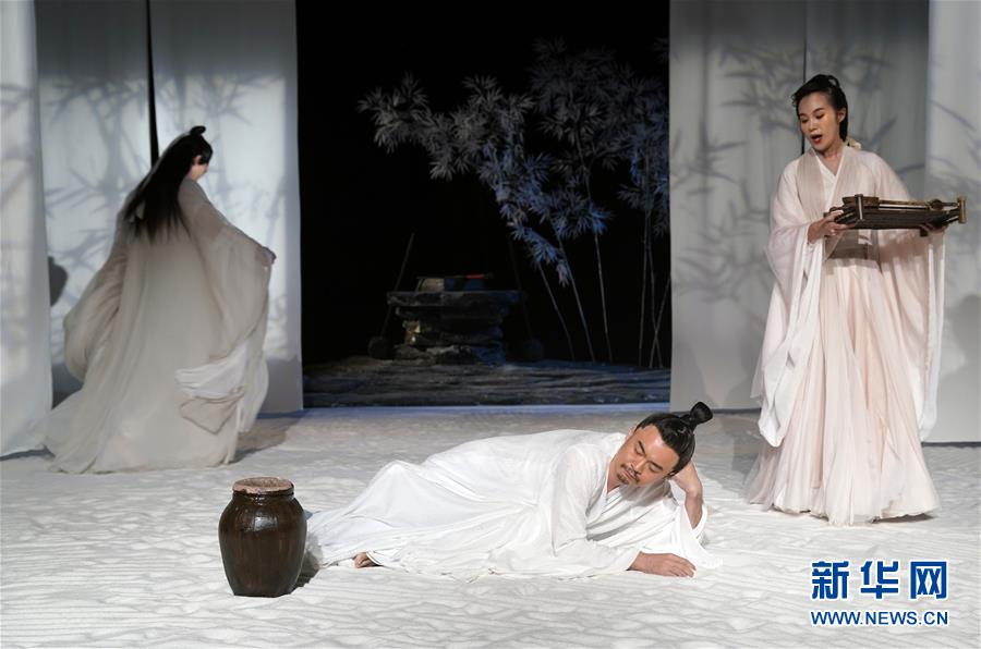 9月16日,演員在話劇《廣陵絕》中表演。 當(dāng)日,話劇《廣陵絕》在北京人藝實(shí)驗(yàn)劇場(chǎng)上演。 新華社記者 金良快 攝
