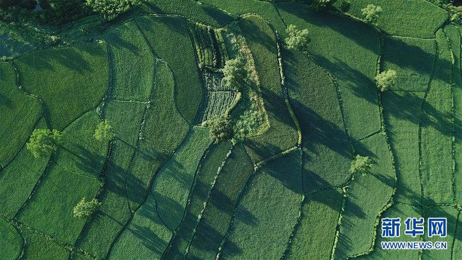 這是8月4日無人機拍攝的安徽黟縣宏村風景區(qū)附近的農(nóng)田晨景。新華社記者張端攝