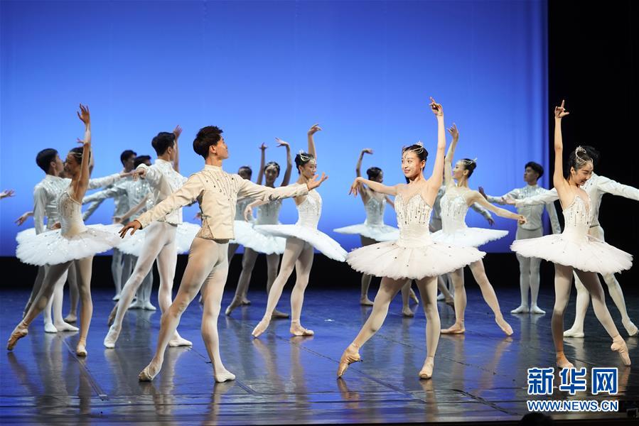 9月19日,演員邱蕓庭(右)、武思聰表演芭蕾舞《堂·吉訶德》選段。 新華社記者 金良快 攝