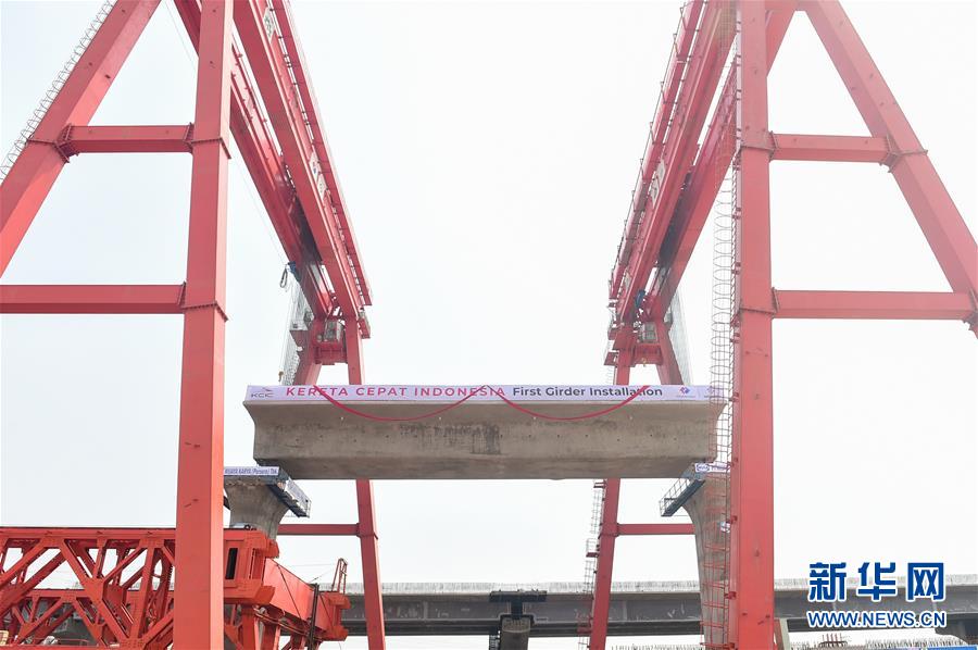 9月30日,雅萬高鐵全線首榀箱梁成功架設。 印度尼西亞雅萬高鐵全線首榀箱梁9月30日架設成功,高鐵建設繼續(xù)穩(wěn)步推進。雅萬高鐵全長142公里,最高設計時速350公里,2018年6月全面開工,總工期為36個月,今年是施工建設全面提速的關(guān)鍵年。建成通車后,雅加達至萬隆的時間將由現(xiàn)在的3個多小時縮短至40分鐘。 新華社記者 杜宇 攝