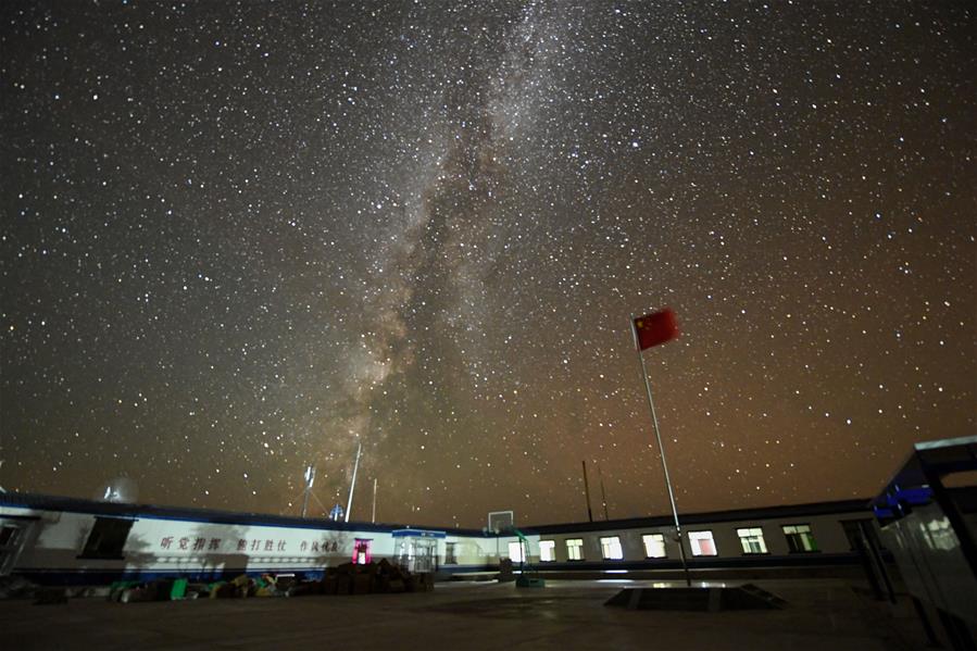 這是在內蒙古自治區(qū)額濟納旗算井子邊境派出所拍攝的星空(9月26日攝)。新華社記者劉磊攝