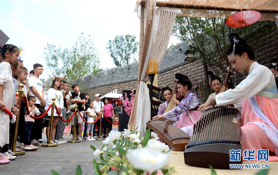 10月3日,在河北邯鄲市磁縣方特主題公園內(nèi),游客在練習(xí)書(shū)法。 當(dāng)日是國(guó)慶假期第三天,人們紛紛走出家門,樂(lè)享假期。 新華社記者 王曉 攝