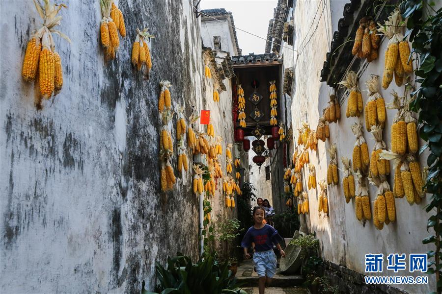 10月5日,新葉古村內(nèi)的“曬秋”美景。新華社記者徐昱攝