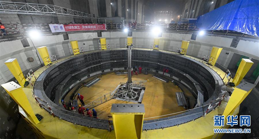 烏東德水電站左岸地下電站主廠房內(nèi)的6號機(jī)組正在建設(shè)中(5月30日攝)。新華社記者陳曄華攝