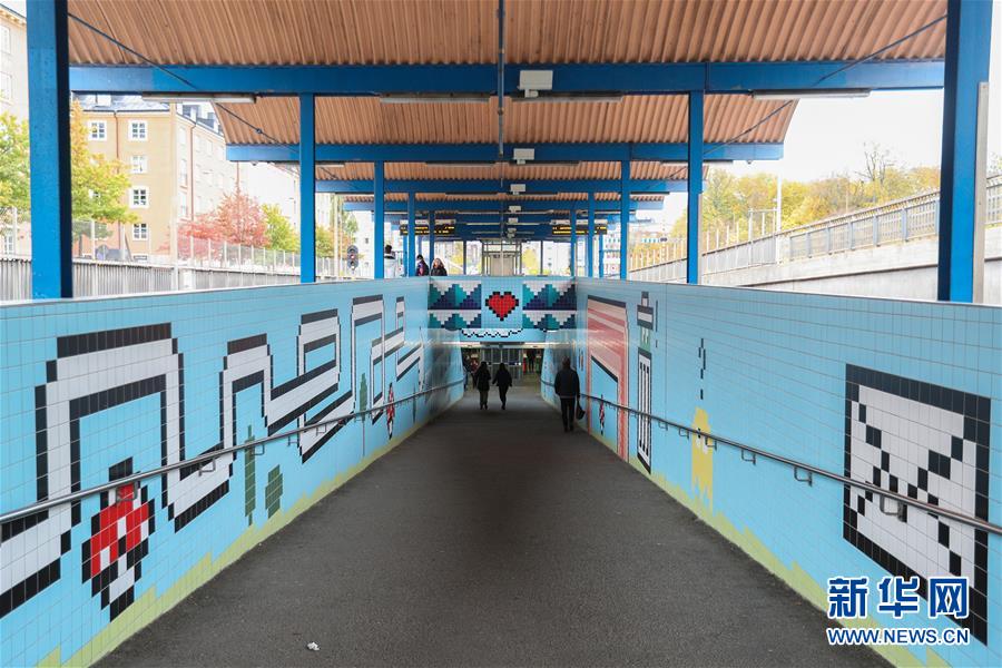10月9日,在瑞典斯德哥爾摩,乘客在一處地鐵站內(nèi)行走。新華社記者鄭煥松攝