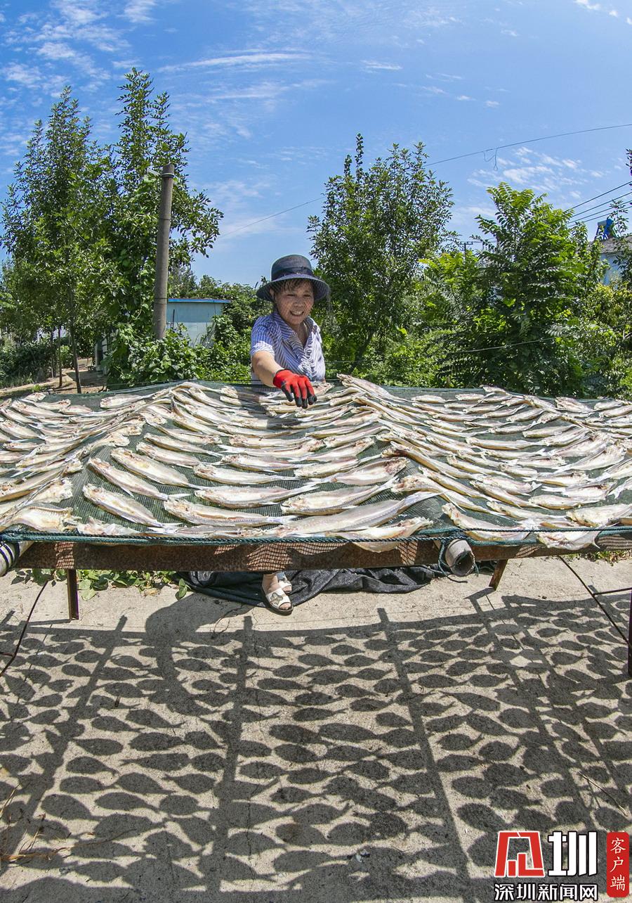 渤海灣畔海產(chǎn)豐收,成群魚蝦分揀后當(dāng)街晾曬,場面賽曬糧食