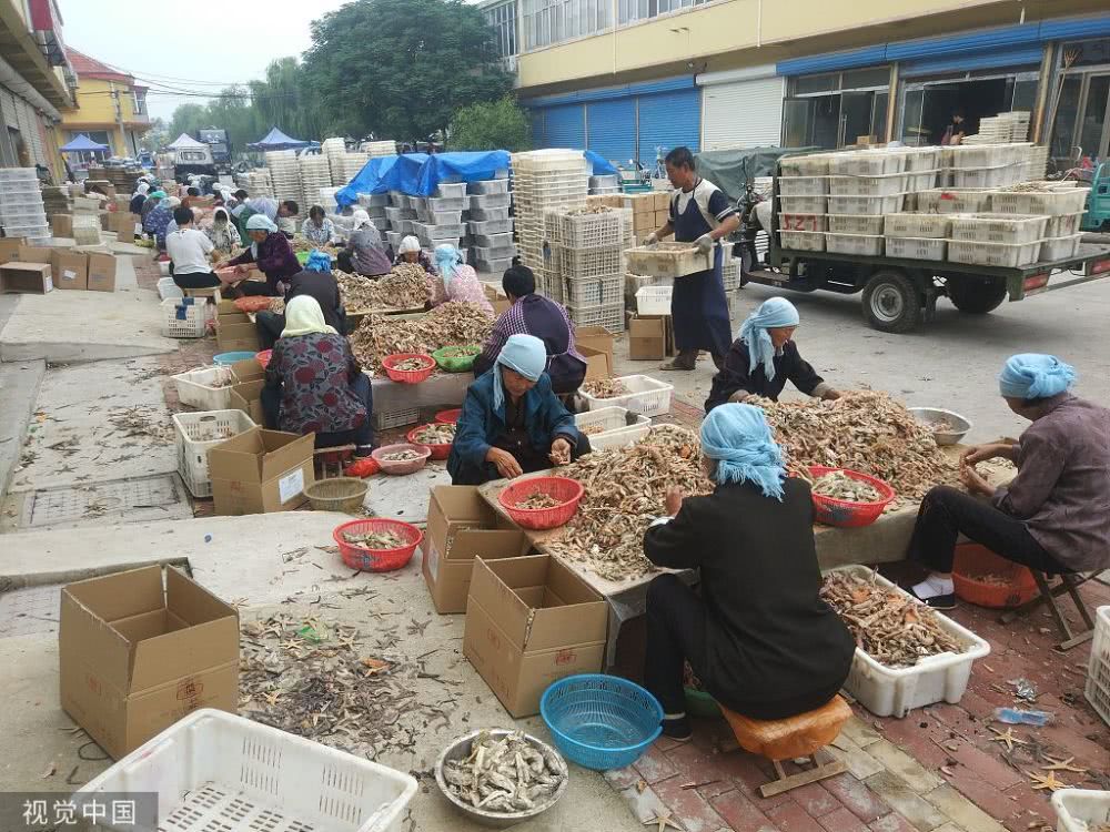 海產(chǎn)豐收的季節(jié)還催生了當(dāng)?shù)鬲毺氐墓しN,這就是分揀工,不少農(nóng)村人在這里靠著分揀海產(chǎn)日賺幾十元。