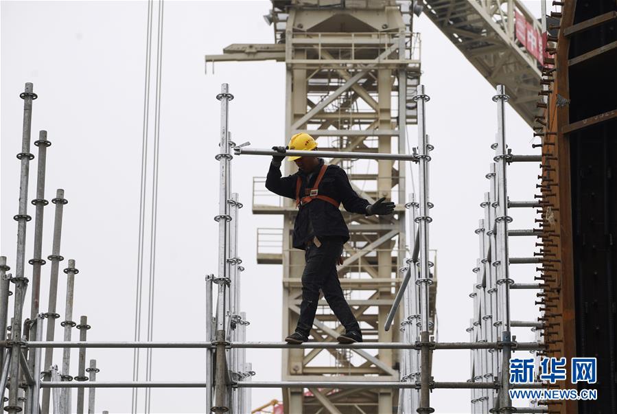 10月10日,中鐵十二局的工人在雄安站施工。新華社記者邢廣利攝
