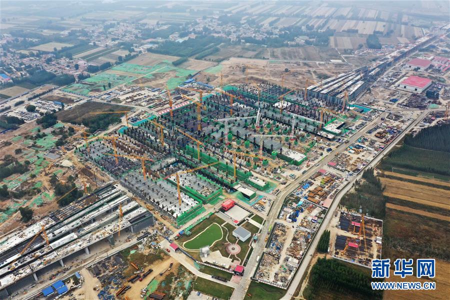 建設(shè)中的雄安站(10月10日無人機拍攝)。新華社記者邢廣利攝