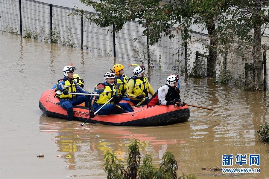 10月14日,在日本長(zhǎng)野市,當(dāng)?shù)鼐仍藛T展開搜救工作。受縱貫東日本強(qiáng)臺(tái)風(fēng)“海貝思”帶來(lái)的強(qiáng)降雨影響,日本多地暴發(fā)洪災(zāi),已造成33人死亡、19人失蹤。據(jù)日本共同社13日統(tǒng)計(jì),“海貝思”過(guò)境導(dǎo)致日本多處河流泛濫,目前有21條河流決堤24處。其中,流經(jīng)長(zhǎng)野縣的千曲川決堤,造成長(zhǎng)野市和千曲市大范圍被淹,大片住宅區(qū)被洪水包圍,有的房屋甚至被淹至2層。新華社記者華義攝