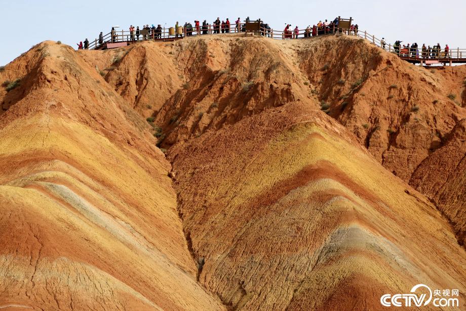 央視網(wǎng)消息:2019年10月15日,金秋時節(jié),位于甘肅省張掖市臨澤縣的七彩丹霞景區(qū)進入旅游旺季,吸引眾多游人紛至沓來。張掖七彩丹霞景區(qū),分布面積約50公里,是中國北方干旱地區(qū)發(fā)育最典型的丹霞地貌。在方圓數(shù)十平方公里的范圍內(nèi),隨處可見有紅、黃、橙、綠、白等多種鮮艷的色塊或線條,把一座座山峰,一條條溝壑,裝點成一幅幅絢麗多姿、燦爛奪目的畫圖。圖片來源:視覺中國