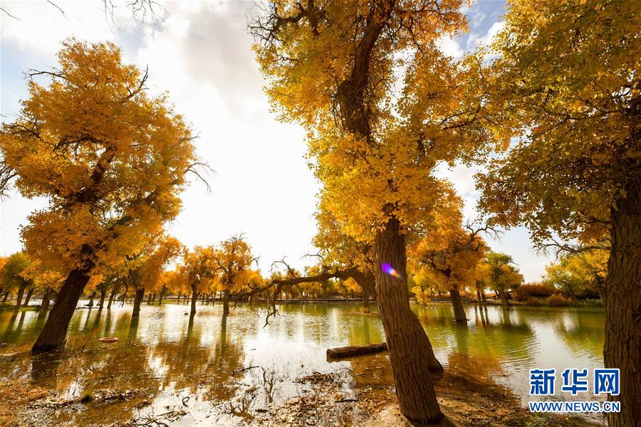 10月16日,這是內(nèi)蒙古阿拉善盟額濟(jì)納旗境內(nèi)的胡楊林。金秋時(shí)節(jié),位于內(nèi)蒙古阿拉善盟額濟(jì)納旗境內(nèi)的胡楊林披上了金黃色的外衣,在陽光的照射下呈現(xiàn)絢麗奪目的色彩,成為沙漠深處的一抹亮色。新華社記者彭源攝