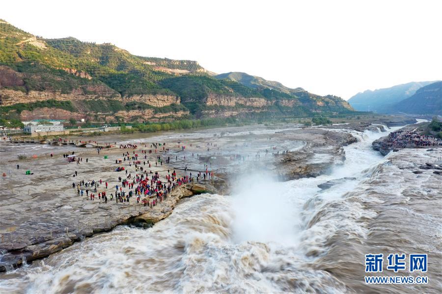 受近日降雨影響,位于山西吉縣的壺口瀑布水量增大,壯美的瀑布群景觀吸引眾多游客前來(lái)觀賞。新華社記者楊晨光攝