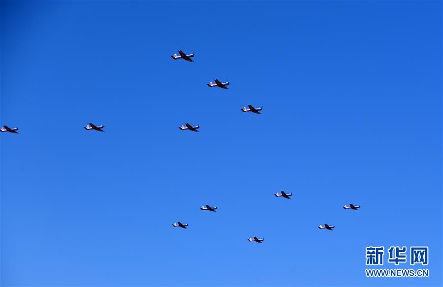 10月17日,“天之翼”飛行表演隊(duì)進(jìn)行飛行表演。 當(dāng)日,慶祝人民空軍成立70周年航空開(kāi)放活動(dòng)在吉林長(zhǎng)春開(kāi)幕??哲姸嘀эw行表演隊(duì)、跳傘表演隊(duì)共舞藍(lán)天,殲-20、運(yùn)-20、殲-16等多款主力戰(zhàn)機(jī)展翅蒼穹,空降兵和航空兵作戰(zhàn)部隊(duì)派出精銳力量展示作戰(zhàn)對(duì)抗,多型武器裝備大規(guī)模、全系統(tǒng)抵臨現(xiàn)場(chǎng)。人民空軍以前所未有的強(qiáng)大陣容亮相長(zhǎng)春,頌揚(yáng)中國(guó)航空事業(yè)110年發(fā)展成就,以開(kāi)放、自信的姿態(tài)為即將到來(lái)的人民空軍70華誕獻(xiàn)上大禮。 新華社記者 張楠 攝