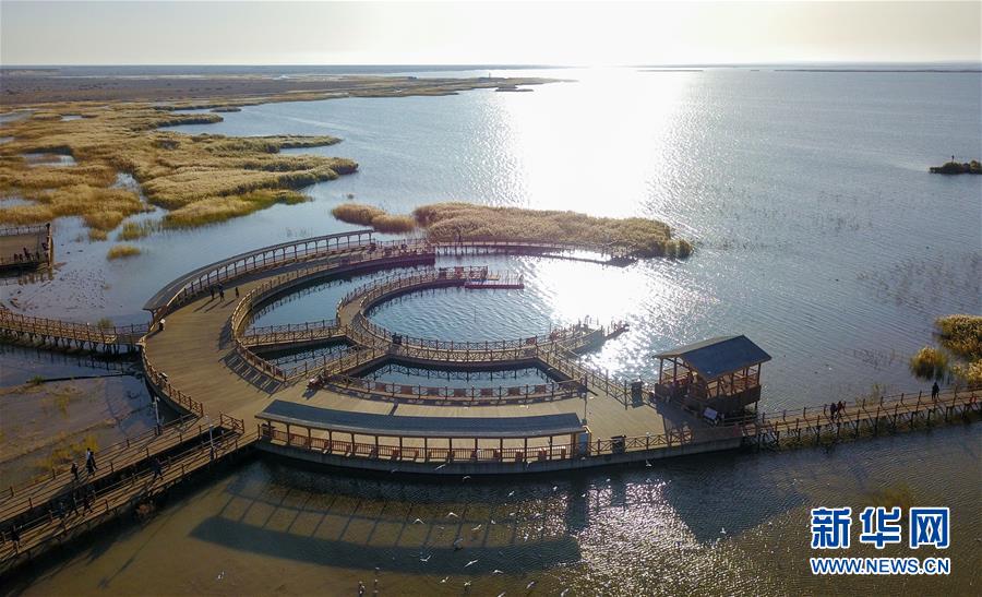 這是10月17日無人機拍攝的居延海風光。新華社記者 彭源 攝