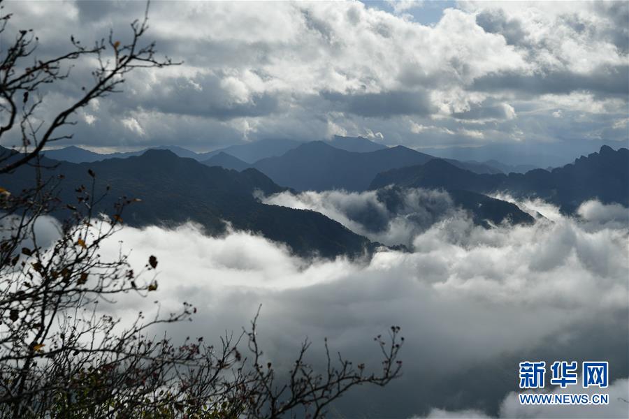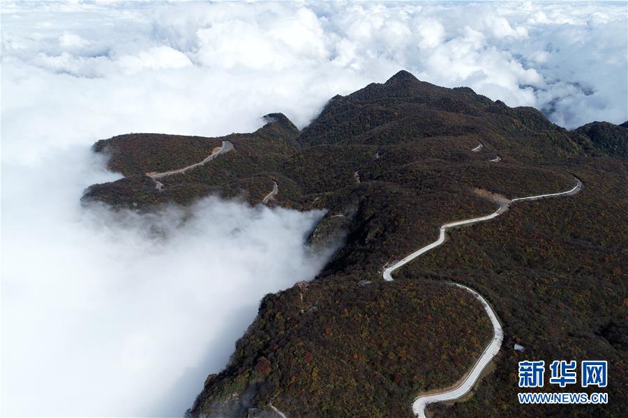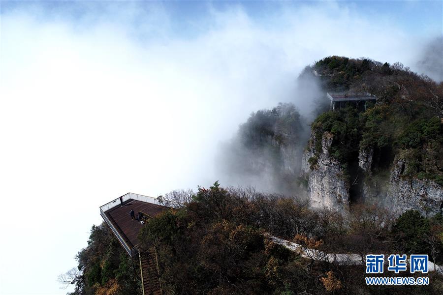 10月17日,游客在漢中市南鄭區(qū)龍頭山風(fēng)景區(qū)拍照。  陜西省漢中市南鄭區(qū)龍頭山風(fēng)景區(qū)位于川陜交界處米倉山主梁。龍頭山景區(qū)常年云霧繚繞,宛如仙境,還有奇石、云海、彩林、霧凇等景觀令游客流連忘返。 新華社記者 張博文 攝