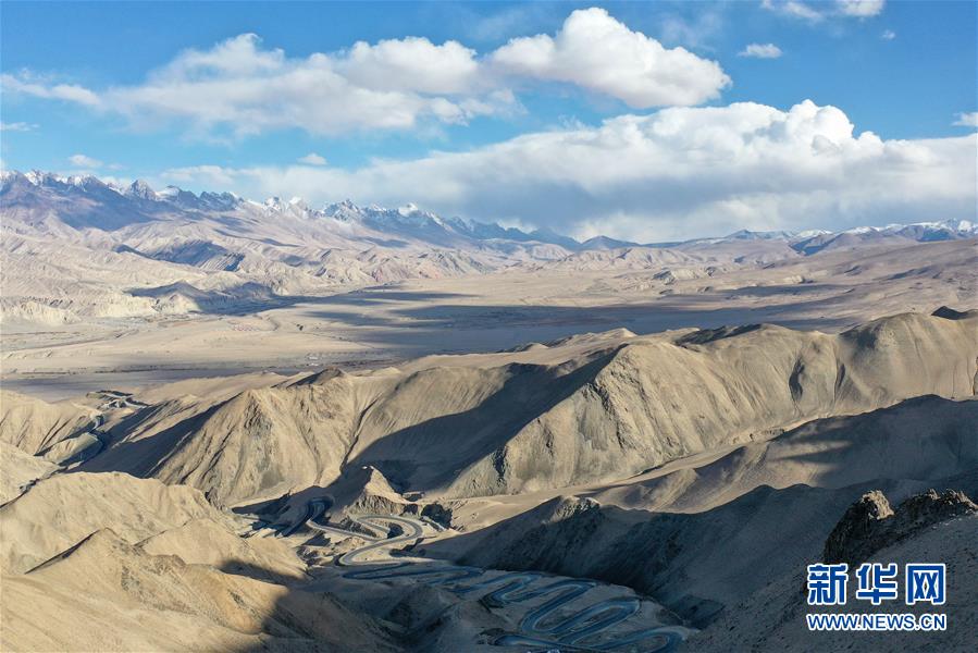 這是10月20日無人機拍攝的新疆塔什庫爾干塔吉克自治縣吾格亞提盤山公路。在中國西陲的新疆帕米爾高原,塔什庫爾干塔吉克自治縣縣城到瓦恰鄉(xiāng)之間有條蜿蜒的盤山公路,海拔超4200米,全長36公里,最大落差近1000米,被當(dāng)?shù)厝朔Q為“高原天路”。盤山公路彎曲盤旋的走勢與周邊雄渾壯麗的風(fēng)光,共同構(gòu)成一幅壯美畫卷。這條公路名為吾格亞提盤山公路,2019年7月投入使用,便利了山區(qū)農(nóng)牧民的出行。新華社記者丁磊攝