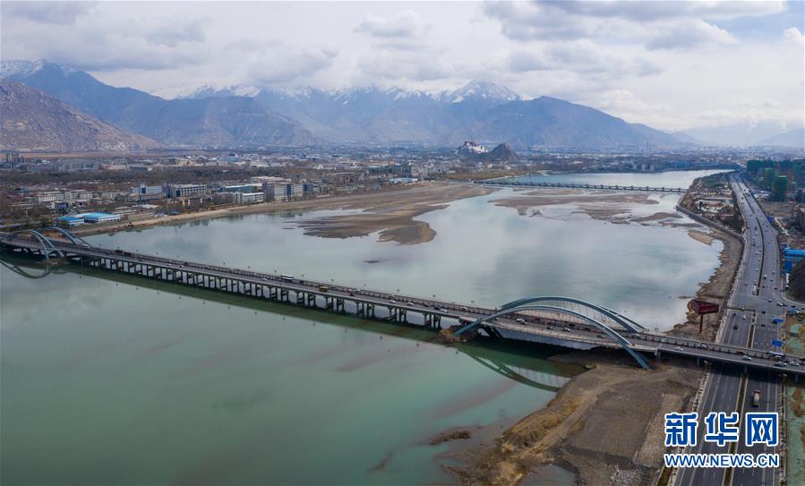 這是橫跨在拉薩河上的拉薩市區(qū)公路(4月3日無人機拍攝)。 新華社記者 晉美多吉 攝