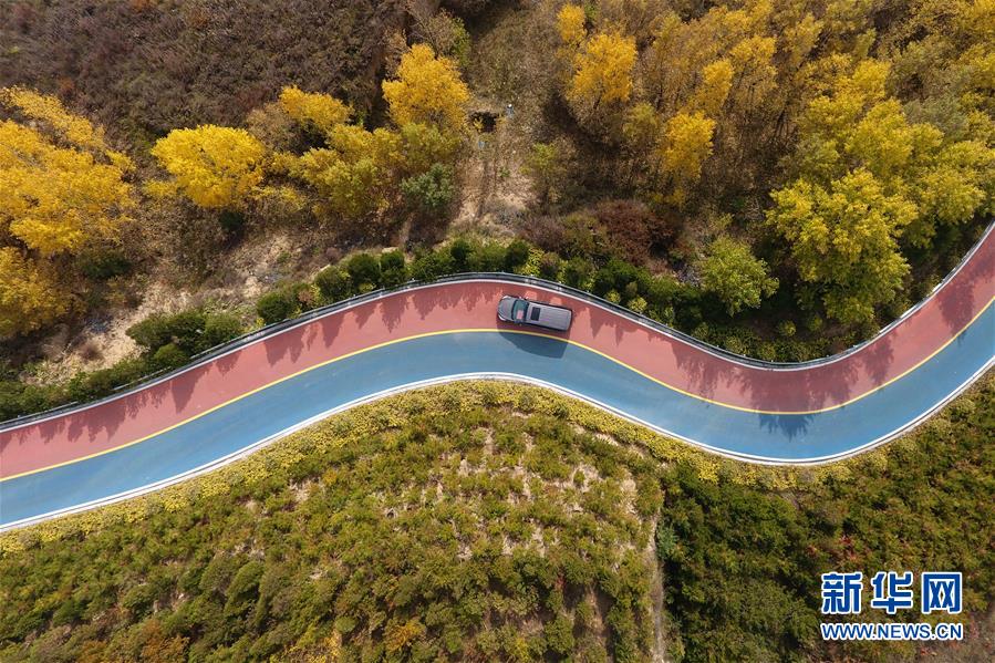 車輛行駛在山西省太原市西山旅游公路上(10月22日無人機(jī)拍攝)。