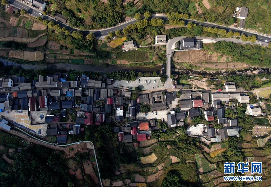 10月24日無人機拍攝的班竹村。浙江省新昌縣境內(nèi)的班竹村位于天姥山腳下,被稱為“天姥門戶”,曾是浙東“唐詩之路”上的驛站。近年來,班竹村依托深厚的文化底蘊大力發(fā)展鄉(xiāng)村旅游,全村“人人參股、戶戶分紅”,將整個村莊打造為旅游綜合體,今年以來班竹村旅游收入已超過800萬元。新華社記者韓傳號攝