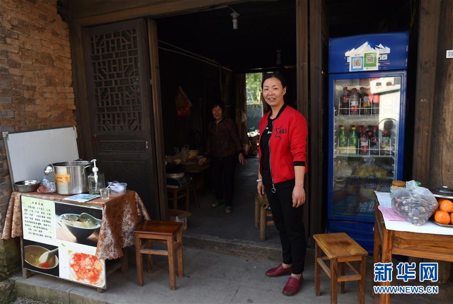 10月24日,班竹村村民王彩妃(前)站在自家的特色小吃攤前。王彩妃曾在縣城打工,村里旅游業(yè)發(fā)展起來(lái)后回家開了個(gè)小吃攤,收入比以前大大增加。浙江省新昌縣境內(nèi)的班竹村位于天姥山腳下,被稱為“天姥門戶”,曾是浙東“唐詩(shī)之路”上的驛站。近年來(lái),班竹村依托深厚的文化底蘊(yùn)大力發(fā)展鄉(xiāng)村旅游,全村“人人參股、戶戶分紅”,將整個(gè)村莊打造為旅游綜合體,今年以來(lái)班竹村旅游收入已超過800萬(wàn)元。新華社記者韓傳號(hào)攝