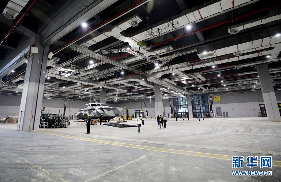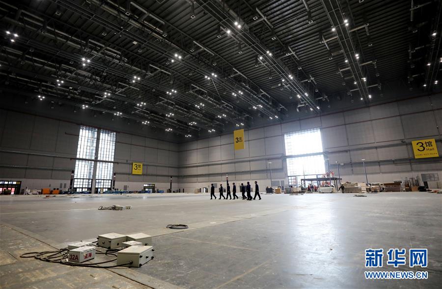 10月25日,在展館內(nèi),展臺框架搭建工作正在進行。  新華社記者 方喆攝
