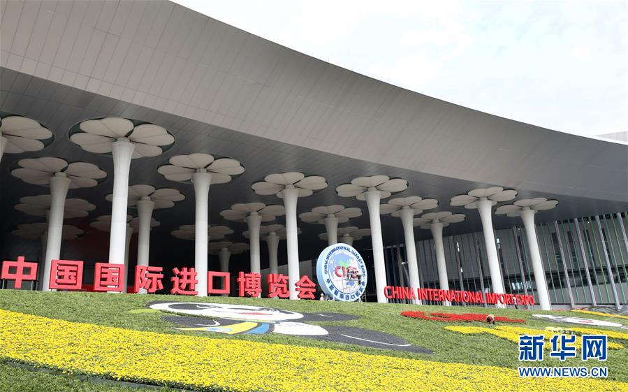 10月25日,這是國家會展中心(上海)南廣場的鮮花裝飾。  新華社記者 方喆攝