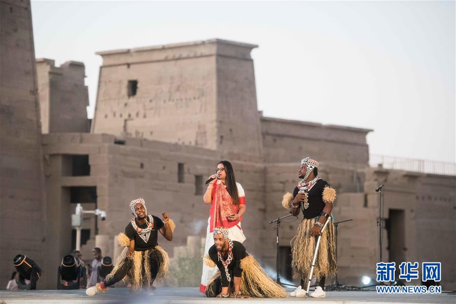 10月27日,演員在位于埃及阿斯旺的菲萊神廟表演。 第四屆中非藝術(shù)節(jié)27日在埃及南部歷史文化名城阿斯旺開(kāi)幕。來(lái)自中國(guó)、埃及、尼日利亞、烏干達(dá)、突尼斯等約30個(gè)國(guó)家的藝術(shù)團(tuán)在開(kāi)幕式上奉獻(xiàn)了各具特色的表演,吸引數(shù)百名當(dāng)?shù)赜^眾前往欣賞。  新華社記者 鄔惠我 攝