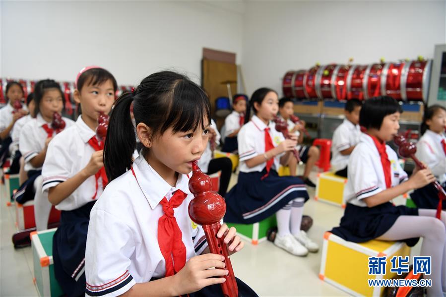 9月3日,金寨縣希望小學(xué)學(xué)生在上音樂(lè)課。新華社記者劉軍喜攝