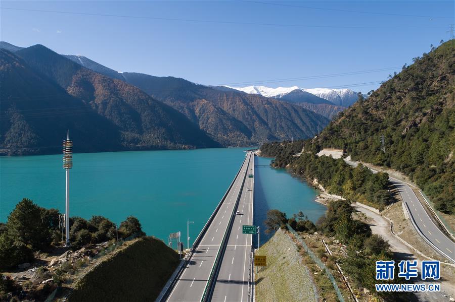 這是10月28日拍攝的林芝境內(nèi)的多布特大橋(無(wú)人機(jī)拍攝)。新華社記者李鑫攝