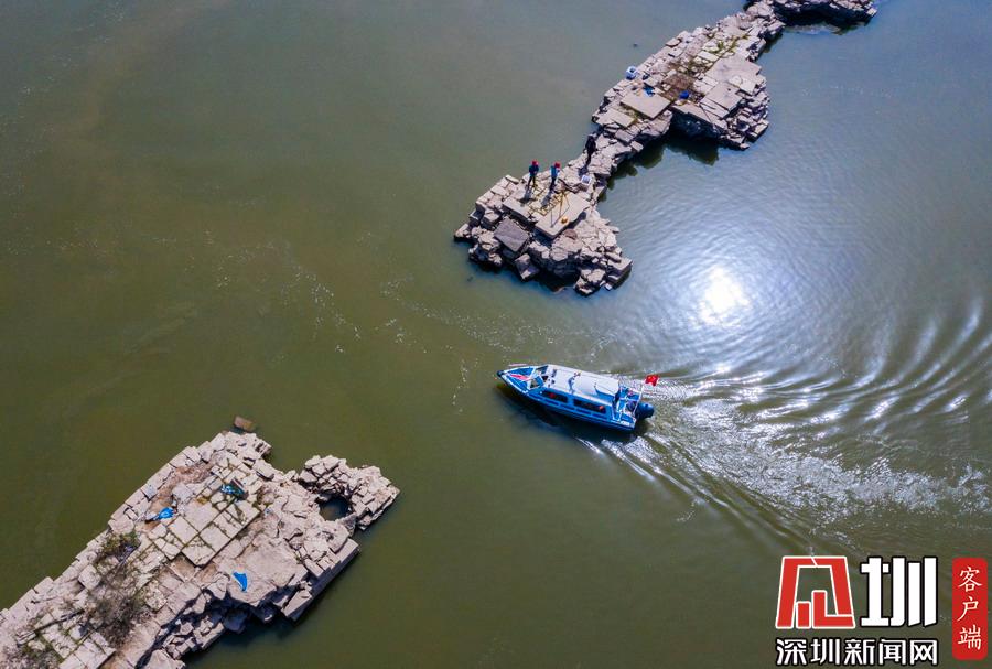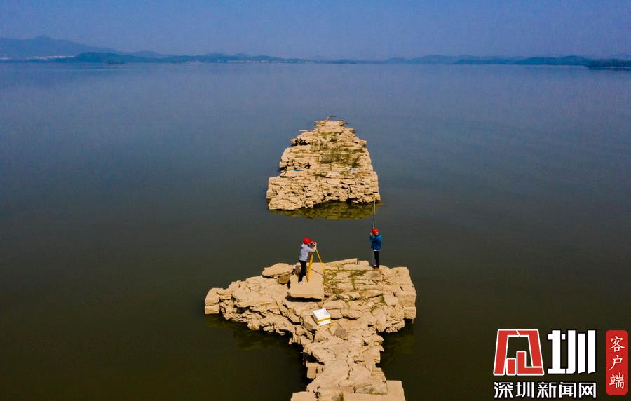 2019年10月30日,江西仙女湖旅游股份有限公司測(cè)量人員乘坐工作船對(duì)明代萬(wàn)年橋進(jìn)行測(cè)量,該橋橋身凸出水位最高處達(dá)1.64米。